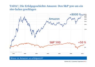 Die Präsentation beschreibt, wie Unternehmen wie Amazon durch eine herausragende Customer Experience (CX) im Wettbewerb erfolgreich sind, indem sie sich auf die Bedürfnisse der Kunden konzentrieren. Sie betonen die Notwendigkeit, traditionelles marketing zu überdenken und CX als zentrale Differenzierungsstrategie zu nutzen, um Kundenloyalität und Profitabilität zu steigern. Beispiele aus den USA und Europa zeigen, dass Unternehmen, die sich konsequent am Kunden orientieren, Marktführerschaft erreichen können.