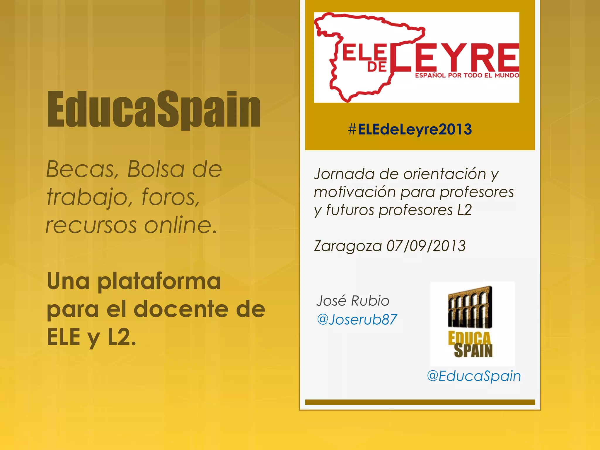 Este documento resume una presentación sobre oportunidades de empleo y recursos para profesores de español como lengua extranjera. Se describen varias opciones de empleo como profesor visitante, auxiliar de conversación y lectorados en diversos países. También incluye información sobre becas, foros, materiales docentes y la plataforma EducaSpain, creada para apoyar a profesores de ELE.