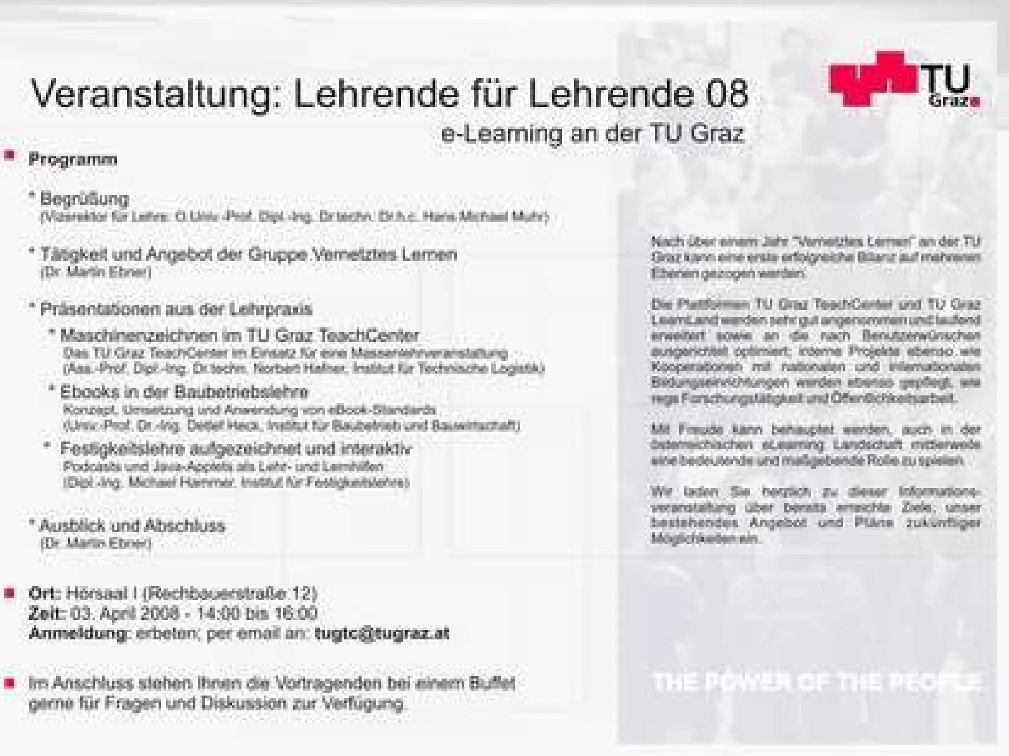 Das Dokument analysiert die E-Learning-Initiativen an der Technischen Universität Graz und eine Umfrage unter Erstsemestern bezüglich ihrer digitalen Geräte und Internetzugänge. Es beschreibt den Beitrag des ZID zur Unterstützung von technologiegestütztem Lernen und die Implementierung eines Learning Management Systems. Zudem umfasst es ein dreistufiges Modell zur Förderung von Innovation und Konsolidierung im Bereich E-Learning.