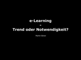 Das Dokument erörtert die Notwendigkeit und die Trends im E-Learning, insbesondere im Kontext von digitalen Natives und der Integration digitaler Medien in die Präsenzlehre. Es wird auf die Rolle der Lernplattform 'Teachcenter' eingegangen, die eine bedeutende Anzahl von Nutzern und Kursen unterstützt. Zudem wird die zukünftige Lernumgebung beschrieben, die den Lernenden in den Mittelpunkt stellen und das Web als Raum für Information und Zusammenarbeit nutzen sollte.