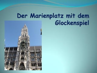Das Dokument beschreibt wichtige Sehenswürdigkeiten und kulturelle Stätten in München, der Hauptstadt Bayerns. Dazu gehören das neue Rathaus, die Frauenkirche, verschiedene Pinakotheken und der Englische Garten. Auch die BMW Welt und der Olympiapark werden erwähnt.