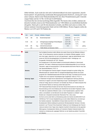 Die Marktanalyse vom 24. August 2012 zeigt, dass der DAX die Marke von 7.000 Punkten nicht verteidigen kann, während die amerikanische Notenbank mögliche weitere quantitative Lockerungen und die EZB Unterstützungmaßnahmen erwägt. Analysten berichten von einem schwachen deutschen Aktienmarkt und erwarten, dass der DAX in einem abwärtsgerichteten Momentum bleibt, wobei zentrale Unterstützungslevels bei 6.880 Punkten liegen. Verschiedene wirtschaftliche Indikatoren wie die Auftragseingänge langlebiger Wirtschaftsgüter deuten auf verbesserte, jedoch unsichere Marktbedingungen hin.