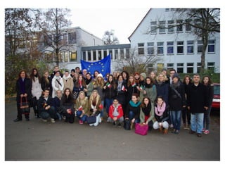 Das Dokument beschreibt das erste Treffen einer Gruppe aus Polen in Deutschland, einschließlich der Ankunft, der Schulvorstellung und des Besuchs des Heinz-Nixdorf-Forums in Paderborn. Es werden auch Aktivitäten wie eine Stadtrallye und ein Poetry Slam erwähnt, die im Rahmen des Erasmus+-Projekts "Bücher können Brücken bauen" durchgeführt werden. Darüber hinaus sind Partnerstädte aus Italien, Polen, der Türkei und Ungarn beteiligt.