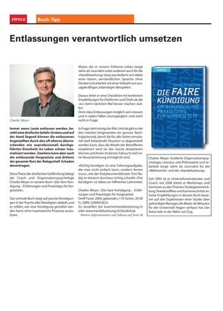 In seinem Buch "Die faire Kündigung" beleuchtet Charles Meyer die psychologischen Auswirkungen von Entlassungen auf betroffene Mitarbeiter, Vorgesetzte und die verbleibenden Teammitglieder. Er bietet praxisnahe Tipps und eine Checkliste zur Verbesserung des Kündigungsprozesses, um traumatische Erfahrungen zu minimieren und den Respekt gegenüber den Entlassenen zu wahren. Meyer, ein erfahrener Coach und Organisationspsychologe, unterstreicht die Notwendigkeit, Kündigungen als Führungsaufgabe zu verstehen und lernbar zu gestalten.