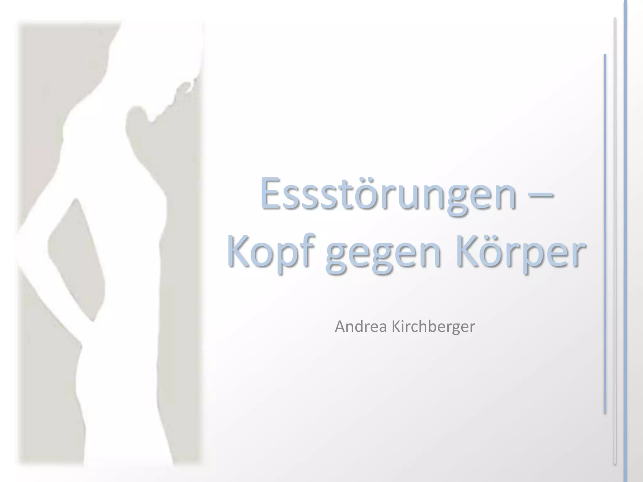 Das Dokument behandelt verschiedene Essstörungen wie Anorexie, Bulimie und Binge Eating sowie deren Symptome und Ursachen, die oft in psychischen Problemen, familiären Einflüssen und gesellschaftlichem Druck wurzeln. Es betont den Kampf gegen Hunger und das Streben nach Kontrolle, was häufig zu einer verzerrten Körperwahrnehmung und Selbstablehnung führt. Essstörungen werden als komplexe Erkrankungen beschrieben, die durch unterschiedliche Faktoren wie falsche Schönheitsideale und Gruppenzwang verstärkt werden.