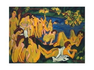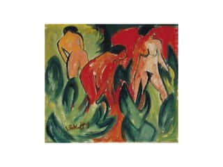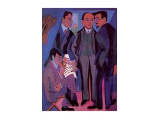 Das Dokument listet bedeutende Künstler und Bewegungen der modernen Kunst auf, darunter den Expressionismus, Dada sowie Gruppen wie die Brücke und der Blaue Reiter. Es werden Künstler wie Edvard Munch, Vincent van Gogh, Wassily Kandinsky und Marcel Duchamp erwähnt, die für ihre innovativen Stile und Techniken bekannt sind. Die Zeitspanne reicht von der Renaissance bis zur frühen Moderne, wobei die Entwicklung unterschiedlicher Kunstströmungen und deren Vertreter hervorgehoben wird.