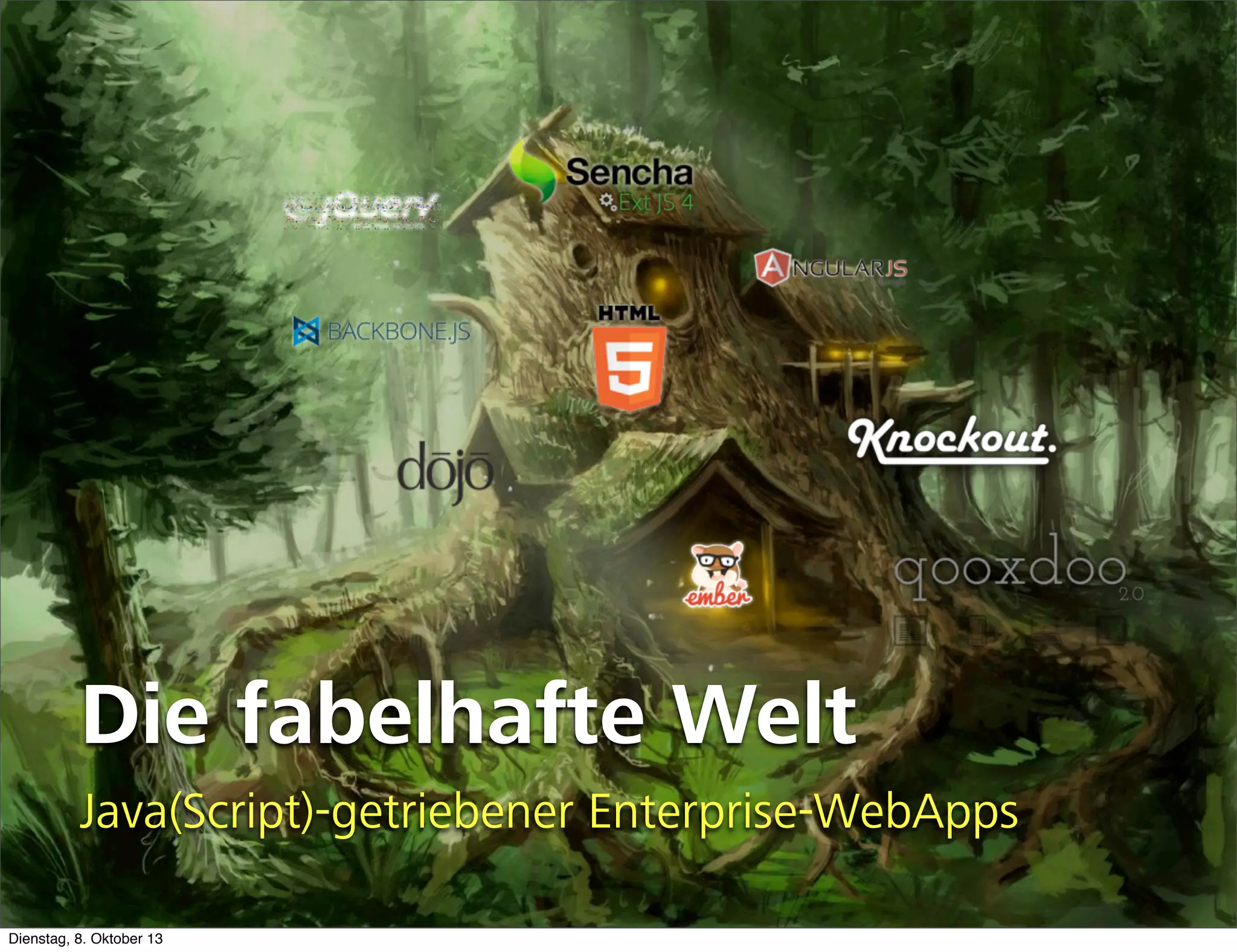 Das Dokument beschreibt die Anforderungen und Herausforderungen bei der Entwicklung von JavaScript-basierten Enterprise-Webanwendungen, einschließlich Frontend-Anforderungen wie Mandantenfähigkeit, Mehrsprachigkeit und komplexe Benutzeroberflächen. Es werden verschiedene Frameworks, Tools und Techniken vorgestellt, um eine robuste und interaktive Anwendung zu erstellen, wobei Vor- und Nachteile der jeweiligen Ansätze diskutiert werden. Zudem wird auf Themen wie Layout-Management, Transaktionen und Testing eingegangen, um die Entwicklung und Wartung dieser Anwendungen zu unterstützen.