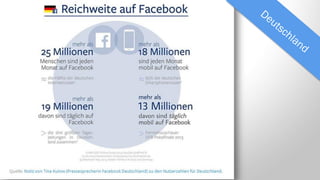 Das Dokument analysiert die Chancen und Risiken des Facebook-Marketings in Deutschland, darunter das steigende Nutzerwachstum und mobile Nutzung, sowie Datenschutzprobleme und negative Bewertungen. Es beschreibt unbekannte Features wie Graph Search, Hashtags und Facebook-Listen, die Unternehmen helfen können, ihre Zielgruppen gezielt anzusprechen. Zusätzlich werden Tools zur Erstellung und Verwaltung von Anzeigen wie der Facebook Power Editor vorgestellt.