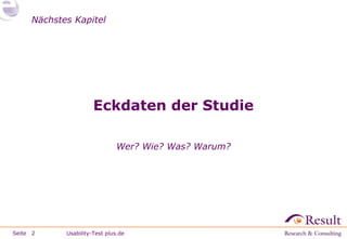 Die Fallstudie beschreibt einen Usability-Test der Website plus.de, der darauf abzielte, Optimierungspotenziale zur Verbesserung der Nutzererfahrung und der Conversion-Rate zu identifizieren. Die Untersuchung umfasste 20 Probanden und beinhaltete Methoden wie Verhaltensbeobachtung und Eyetracking, wobei verschiedene Problembereiche, insbesondere bei der Sichtbarkeit von Filterfunktionen und der Benutzerführung, festgestellt wurden. Die umgesetzten Änderungen führten zu einer signifikanten Steigerung der Nutzerzufriedenheit und der Conversion, was durch positive KPIs der Website belegt wird.