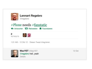 Das Dokument beschreibt Fanstatic, ein Tool zur Einbindung statischer Ressourcen wie JavaScript und CSS in Webapplikationen. Es behandelt Funktionen wie Ressourcen-Bundling, Versionierung und die Verwendung von 'Slots', um Ressourcen zur Laufzeit zu verwalten. Zudem werden zukünftige Entwicklungen und Anwendungsideen für Preprocessing und moderne Technologien wie CoffeeScript und SCSS/LESSCSS diskutiert.