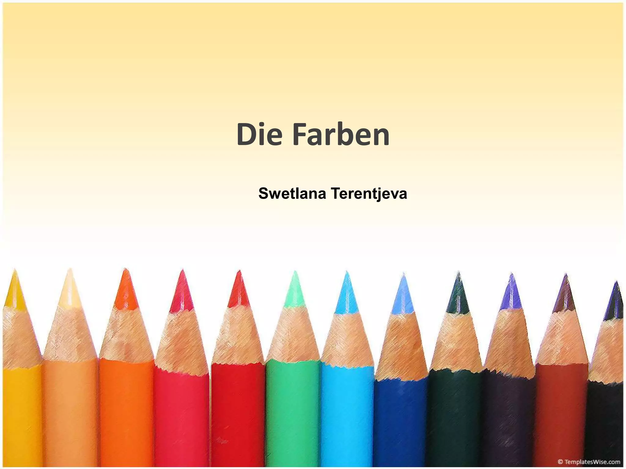 Das Dokument beschreibt verschiedene Farben und gibt konkrete Beispiele für Objekte in diesen Farben. Es behandelt Farben wie schwarz, weiß, gelb, rot, blau, grün, orange, rosa, lila, braun und grau. Zudem wird auf helle und dunkle Farbvarianten eingegangen und es wird die Frage nach der Lieblingsfarbe gestellt.