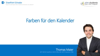 Das Dokument informiert über die verschiedenen Trainingsangebote von SharePoint Schwabe, darunter Präsenzschulungen, Workshops und E-Learning, die sich an unterschiedliche Zielgruppen wie Anwender, Administratoren und Entwickler richten. Außerdem wird auf die Nutzung aller verfügbaren Funktionen des SharePoint-Systems hingewiesen, bevor Erweiterungen vorgenommen werden. Kontaktinformationen für Feedback und Themenwünsche sind ebenfalls enthalten.
