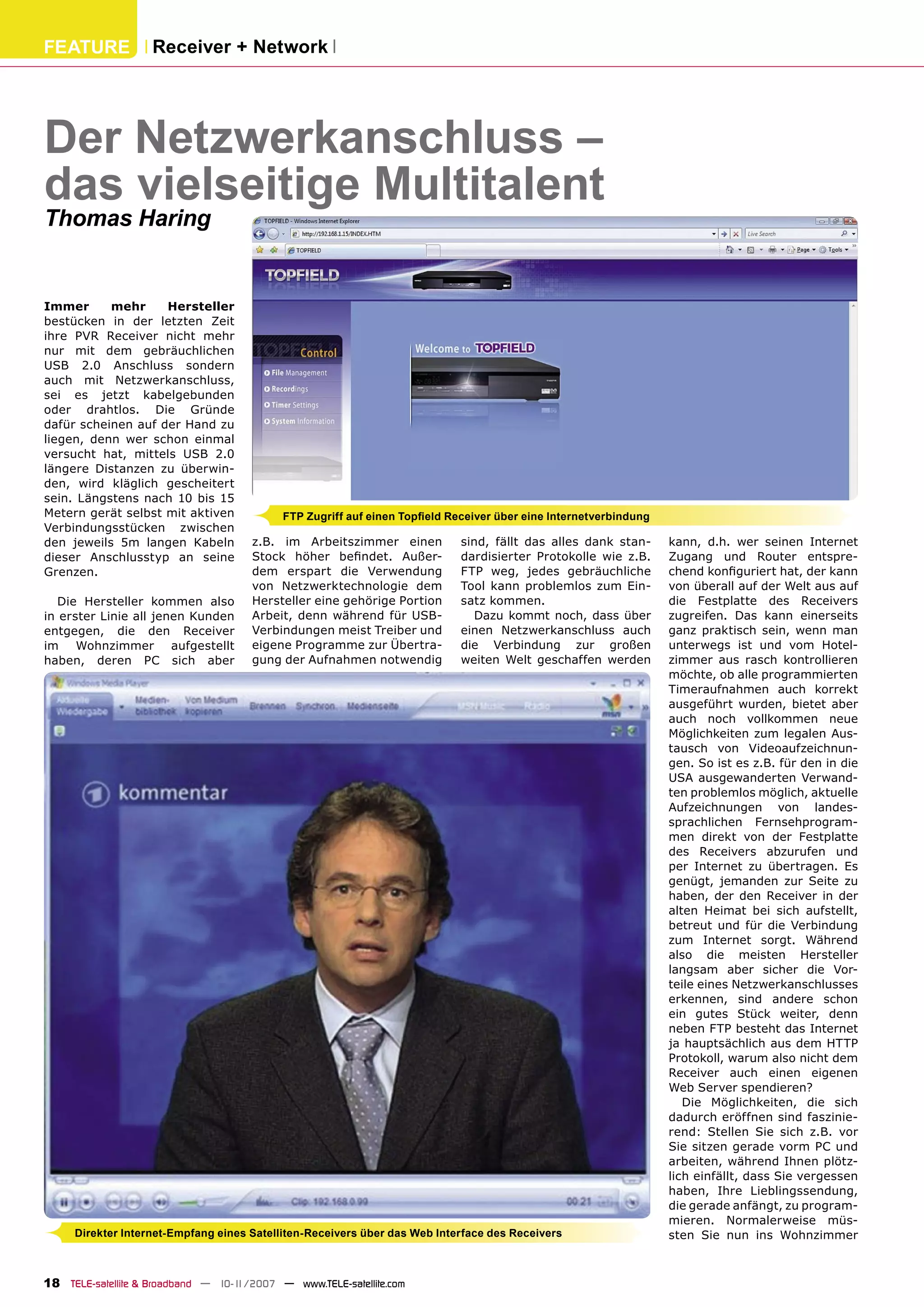 Immer mehr PVR-Receiver von Herstellern sind mit Netzwerkanschlüssen ausgestattet, was den Zugriff auf Inhalte über das Internet erleichtert und neue Möglichkeiten für die Programmierung und den Austausch von Videoaufzeichnungen schafft. Neben der Nutzung von FTP-Protokollen wird auch die Einbindung von HTTP-Servern in Receiver diskutiert, was eine Fernsteuerung und Echtzeitüberwachung ermöglicht. Diese Entwicklungen erhöhen die Flexibilität der Nutzer und verbessern den Zugang zu Programminhalten, erfordern jedoch auch Sicherheitsmaßnahmen.