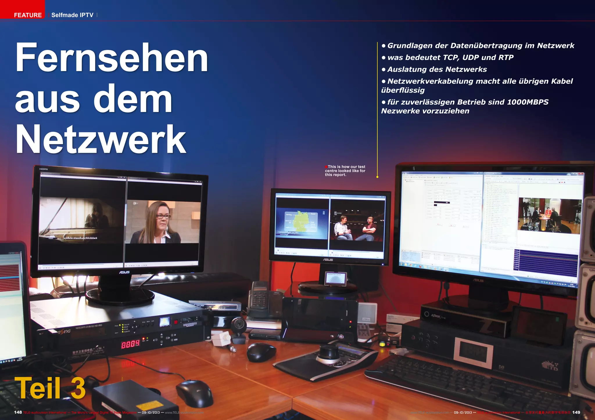 Das Dokument bietet eine umfassende Einführung in IPTV und die Grundlagen der Datenübertragung in Netzwerken, einschließlich Protokollen wie TCP, UDP und RTP. Es wird erklärt, wie Multicast- und Unicast-Übertragungen funktionieren, sowie die erforderlichen Netzwerkbedingungen, um IPTV effizient zu betreiben. Zudem wird die Notwendigkeit diskutiert, auf 1000mbps-Netzwerke umzusteigen, um die Anforderungen moderner IPTV-Systeme zu erfüllen.