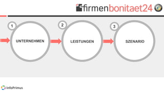 Die Website www.firmenbonitaet24.de, betrieben von Infoprimus, ermöglicht Nutzern den sofortigen Download von Bonitätsauskünften deutscher Firmen in drei Varianten: Vollauskunft, Kreditauskunft und Bonitätscheck, ohne Anmeldung oder Mitgliedschaft. Die Auskünfte bieten umfassende Informationen über die wirtschaftliche Lage und die Bonität von Unternehmen, um fundierte Kreditentscheidungen zu unterstützen. Infoprimus fokussiert sich auf die Entwicklung moderner Technologien mit einem B2B-Ansatz und unterstützt Kunden durch die rechtzeitige Bereitstellung relevanter Firmeninformationen.