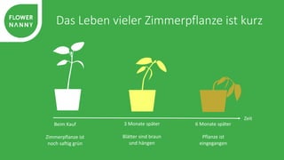 Die Flowernanny ist ein innovatives System zur automatischen Pflege von Zimmerpflanzen, das individuelle Bedürfnisse berücksichtigt und durch Solarpaneele betrieben wird. Der Sensor misst die Erdfeuchtigkeit und steuert den Gießzyklus, während LEDs Hinweise zur Pflege geben. Das Produkt wird über verschiedene Vertriebskanäle vermarktet und zeichnet sich durch einfache Handhabung und bedarfsgerechte Bewässerung aus.