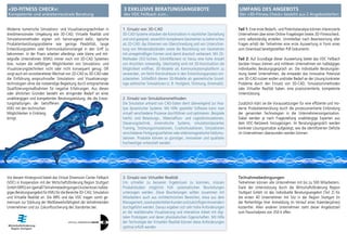 Das Virtual Dimension Center Fellbach bietet in Zusammenarbeit mit der Wirtschaftsförderung Region Stuttgart ein kostenloses Beratungsangebot für kleine und mittlere Unternehmen im Bereich 3D-CAD, Simulation und virtuelle Realität an. Unternehmen mit bis zu 500 Mitarbeitern können sich für individuelle Beratungsgespräche und einen A3D-Fitnesscheck anmelden, um ihre Potenziale zu analysieren und die Effizienz ihrer Produktentwicklung zu steigern. Darüber hinaus werden spezifische Lösungen zur Überwindung identifizierter Defizite in der Nutzung von 3D-CAD und Simulationstechniken angeboten.