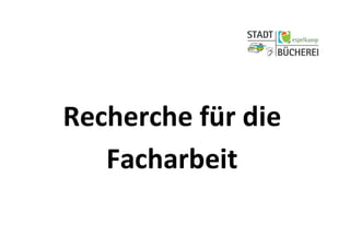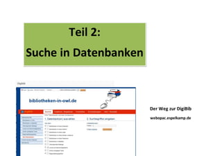 Das Dokument beschreibt die Nutzung der Digibib-Webopac-Plattform zur Suche in Datenbanken für eine Facharbeit. Es erläutert die Registrierung, Suchmaske sowie die Auswahl von Datenbanken und die verschiedenen Arten von Treffern, darunter frei verfügbare Quellen und solche, die eine Anmeldung erfordern. Außerdem werden das Anlegen einer Merkliste, die Fernleihe und korrekte Zitierweisen digitaler Quellen dargestellt.