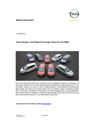 Opel bietet eine breite Palette von Fahrzeugen mit alternativen Antrieben an, insbesondere mit CNG-Erdgasantrieb und LPG-Flüssiggasantrieb, um den steigenden Spritpreisen entgegenzuwirken. Kunden können derzeit zwischen vier CNG-Modellen und fünf LPG-Modellen wählen, die alle das umweltfreundliche ecoflex-Logo tragen. Diese Fahrzeuge zeichnen sich durch ihre Wirtschaftlichkeit und Umweltfreundlichkeit aus.