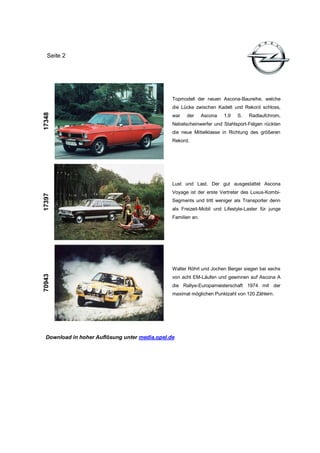 Am 13. September 2010 feiert Opel das 40-jährige Bestehen des Manta und Ascona A, die 1970 vorgestellt wurden. Der Manta A erfreute sich großer Beliebtheit mit 498.553 verkauften Einheiten, während das Topmodell Manta GT/E als erster Opel mit elektronischer Einspritzung herausragte. Der Ascona A schloss die Lücke zwischen Kadett und Rekord und war zudem erfolgreich in der Rallye-Europameisterschaft.
