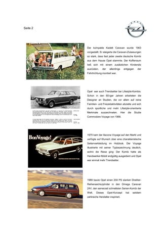 Opel hat die Tradition des Kombi-Modells seit 1962 mit dem Kadett A und dem ersten europäischen Kombi, dem Olympia Rekord Caravan, fortgeführt. Der neue Astra Sports Tourer setzt diesen Erfolg fort und kombiniert elegante Designs mit hoher Praxistauglichkeit und umfangreicher Ladekapazität. Die Entwicklung zeigt Opels Innovationskraft im Kombisegment, das über die Jahre Familien- und Freizeitbedürfnisse bedient hat.