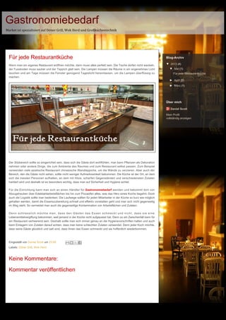 Das Dokument behandelt die wichtigen Aspekte der Einrichtung und Organisation einer Restaurantküche, einschließlich Hygiene, Sicherheit und Logistik. Es wird darauf hingewiesen, dass sowohl der Kundenbereich als auch die Küche sorgfältig gestaltet werden müssen, um ein angenehmes Ambiente und eine effiziente Essenszubereitung zu gewährleisten. Der Text betont die Bedeutung der Beachtung von Hygienevorschriften und die Auswahl frischer Zutaten, um die Zufriedenheit der Gäste sicherzustellen.