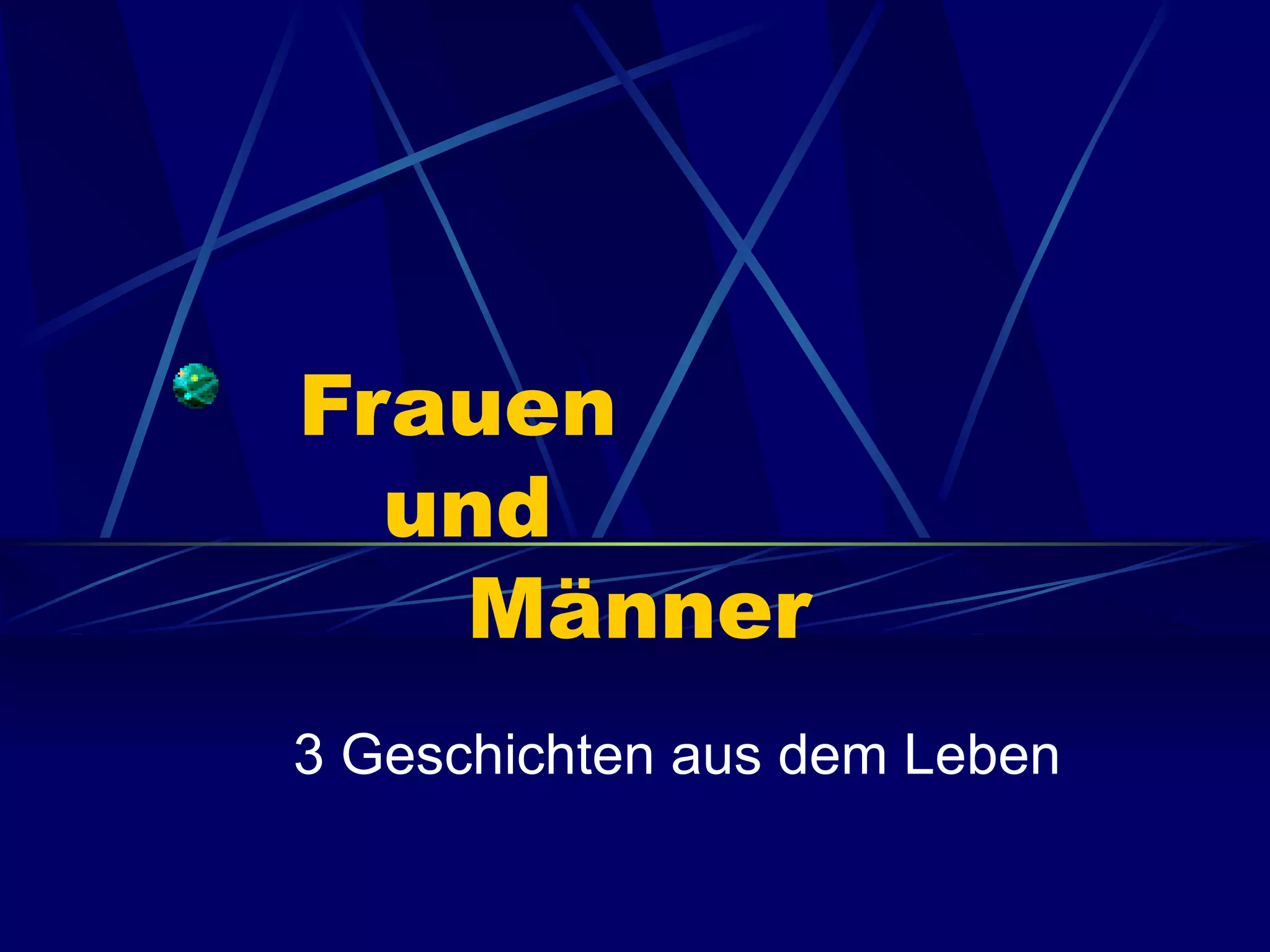 Das Dokument erzählt drei humorvolle Geschichten über Männer und Frauen, die jeweils eine moralische Lektion vermitteln. In der ersten Geschichte opfert eine Frau sich für die Männer, was die Stärke der Frauen betont, während die zweite Geschichte zeigt, dass Männer oft die Methoden der Frauen missverstehen. Die letzte Geschichte hebt hervor, dass Frauen oft praktikable Lösungen finden, während Männer sich in Schwierigkeiten bringen, wenn sie nicht kreativ denken.