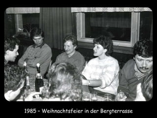 Das Dokument bietet einen Überblick über 30 Jahre Ereignisse und Aktivitäten, die von 1979 bis 2009 stattfanden, darunter zahlreiche Trainingslager, Weihnachtsfeiern und Weintouren. Auffällig sind regelmäßig wiederkehrende Veranstaltungen, insbesondere Trainingslager in Wilhelmsdorf und Weintouren zu verschiedenen Zielen. Der chronologische Rückblick spiegelt sowohl sportliche als auch gesellige Aktivitäten wider.