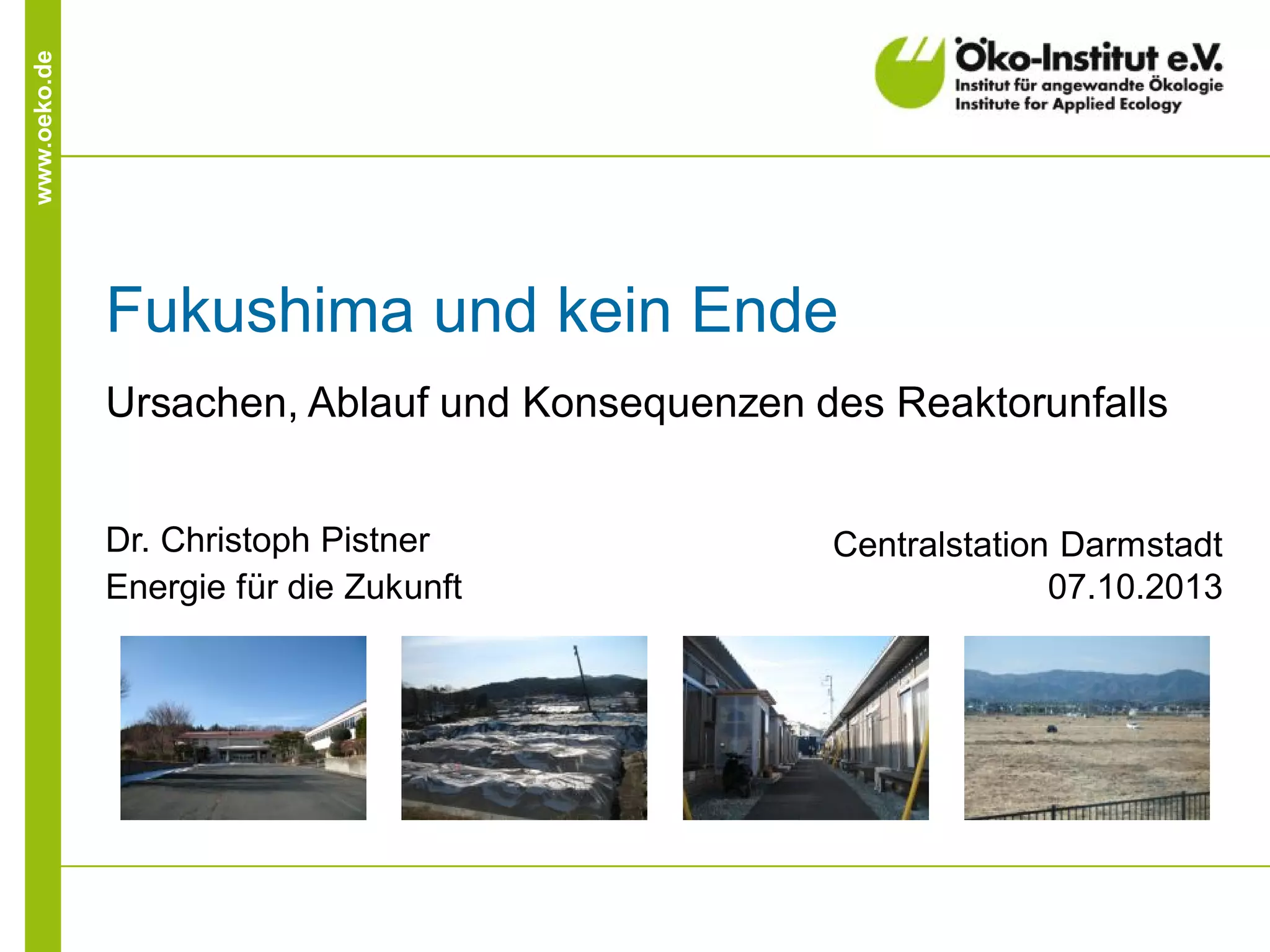 Das Dokument von Dr. Christoph Pistner beschreibt die Ursachen, den Ablauf und die Folgen des Reaktorunfalls in Fukushima im Jahr 2011, einschließlich der technischen Fehler und der Reaktion auf den Unfall. Es wird erläutert, wie Erdbeben und Tsunami zusammenwirkten, um die Kühlung der Reaktoren zu unterbrechen, was zu Kernschmelzen und Explosionen führte. Der Text schließt mit einer Analyse der heutigen Situation und der erforderlichen Maßnahmen für die Dekontamination und Stabilisierung der Anlage.