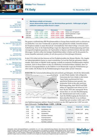 Am 16. November 2012 schloss die Wall Street mit Verlusten, während die asiatischen Aktienmärkte gemischte Signale zeigten, beeinflusst durch Hoffnung auf geldpolitische Lockerungen in Japan. Die Eurozone berichtet von besseren BIP-Wachstumszahlen als erwartet, wobei die Handelsbilanzzahlen in Italien und der EU auf positive Entwicklungen hin untersucht werden sollten. In den USA wird ein moderates Produktionsplus in der Industrieproduktion erwartet, jedoch bestehen aufgrund von Störungen durch einen Wirbelsturm erhebliche Unsicherheiten.