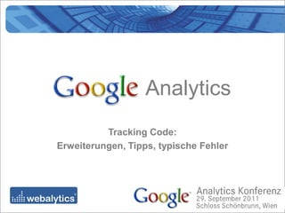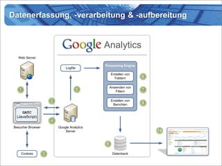Das Dokument beschreibt die Implementierung und Nutzung des Google Analytics Tracking Codes (GATC) einschließlich verschiedener Szenarien wie Cross-Domain- und Cross-Subdomain-Tracking, Anpassen der Sitzungsdauer und Verweiskategorisierung. Es enthält Details zu Cookies, deren Gültigkeit sowie spezifische Anweisungen zur Anpassung des Codes für verschiedene Tracking-Anforderungen. Zudem werden gängige Fehler und Tipps zur Verbesserung der Datenerfassung behandelt.