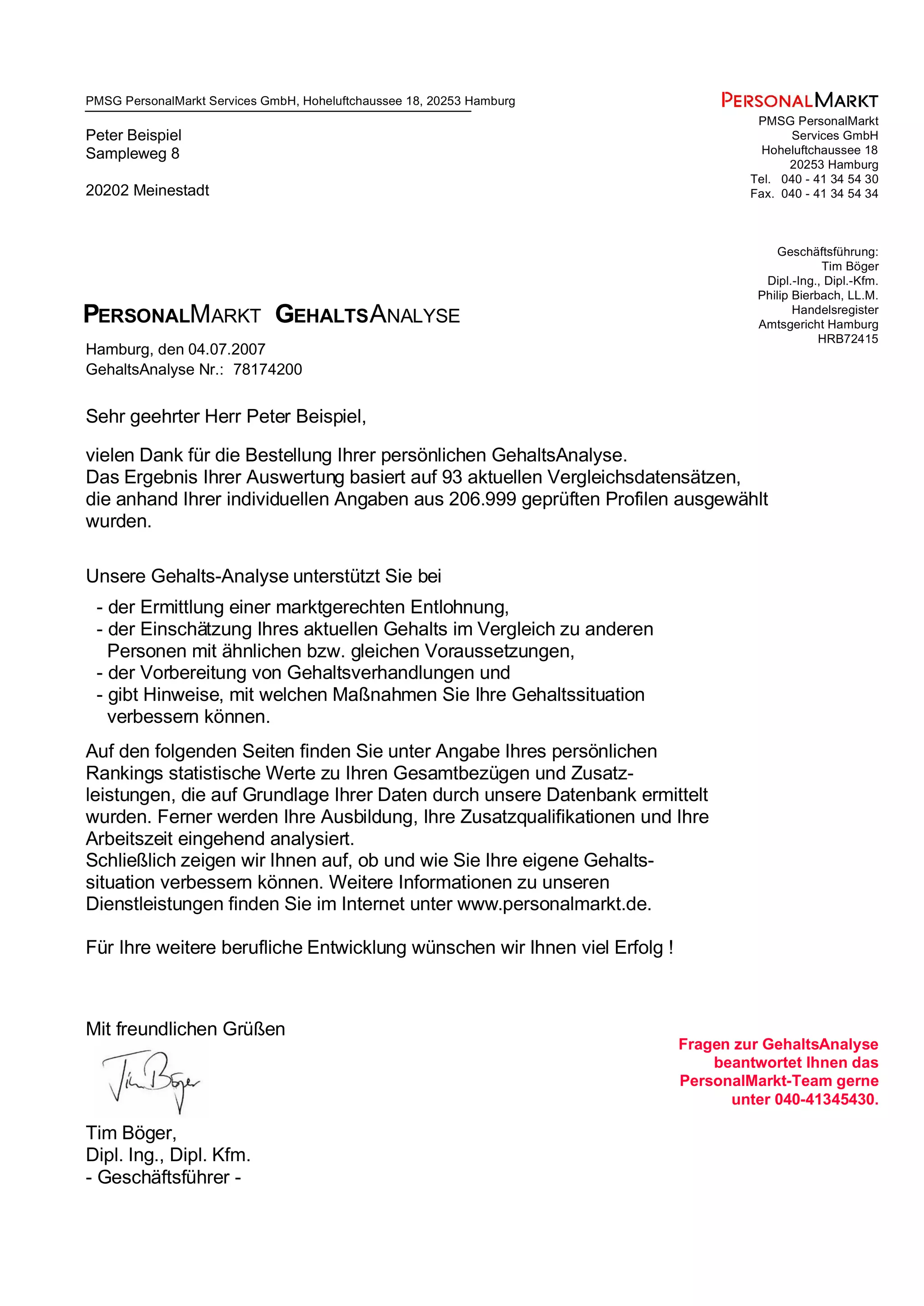 Gehaltsanalyse Beispiel