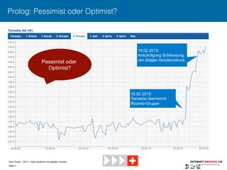Das Dokument behandelt die Herausforderungen und Best Practices für digitale Geschäftsmodelle im Bereich von Nachrichtenportalen, wobei verschiedene Bezahlmodelle wie Metered, Pay-per-Article und Flatrate vorgestellt werden. Es wird auf den abnehmenden Traffic, die Bedeutung von Social Media und neue Erzählformen eingegangen, sowie auf die Entwicklung einer Bezahlkultur und die Akzeptanz von Online-Abonnements. Abschließend wird das Beispiel von Blendle als Aggregations-Plattform für Artikel aus verschiedenen Verlagen aufgeführt, die eine neue Art des Bezahlens im digitalen Journalismus repräsentiert.