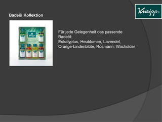 Die Kneipp® Badeölkollektion bietet verschiedene Badeöle für jede Gelegenheit, darunter Eukalyptus und Lavendel, um tiefenentspannende Erlebnisse zu ermöglichen. Zusätzlich enthält das Set spezielle Badeperlen zur Entspannung und Ruhe. Bei Fragen oder Anregungen können Kunden Kneipp Schweiz GmbH kontaktieren.