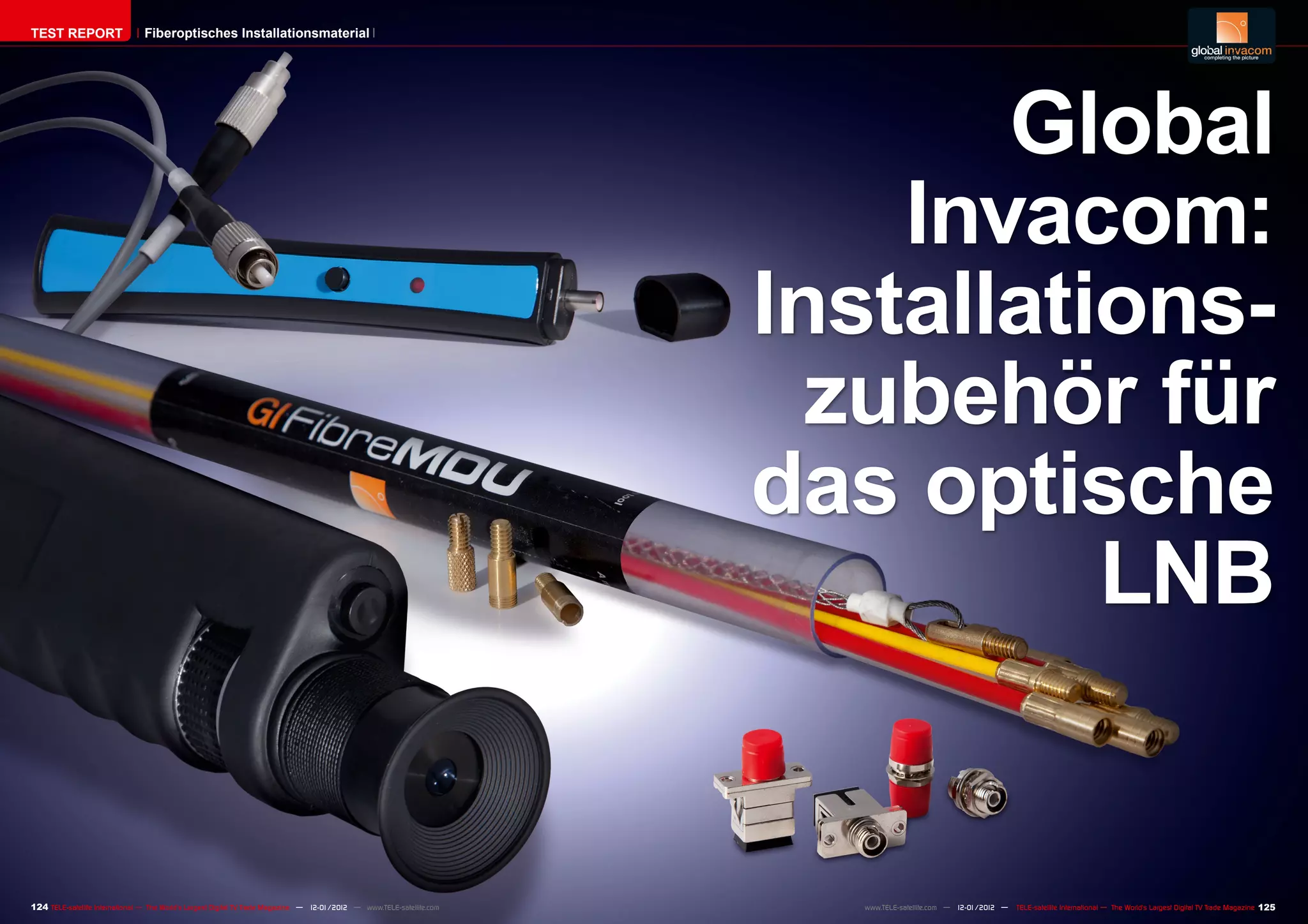 Der Testbericht zu fiberoptischem Installationsmaterial von Global Invacom beschreibt die Vorteile und technischen Voraussetzungen eines optischen LNBs im Vergleich zu herkömmlichen LNBs, insbesondere hinsichtlich der Signalübertragung und Installation. Das Dokument hebt hervor, dass die fiberoptische Technik eine deutlich höhere Flexibilität und Qualität in der Signalverteilung ermöglicht und in der Zukunft zum Standard werden könnte. Außerdem werden verschiedene Installationshilfen und Reinigungsprodukte vorgestellt, die den Montageprozess erleichtern und die Signalqualität sichern.