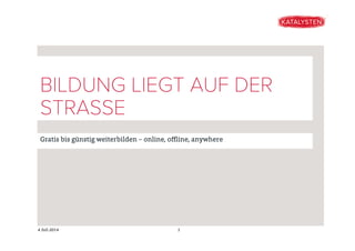 Das Dokument bietet eine Übersicht über Möglichkeiten zur kostenlosen oder kostengünstigen Weiterbildung in Hamburg, sowohl online als auch offline. Es werden verschiedene Plattformen, Veranstaltungen und Kurse vorgestellt, die es ermöglichen, Wissen und Fähigkeiten in verschiedenen Bereichen zu erweitern. Die Ressourcenauswahl umfasst TED Talks, MOOCs, Volkshochschulen, Workshops und Netzwerke für kreative und technologische Interessen.