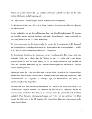 Die Grammatik-Übersetzungsmethode, die im 19. Jahrhundert in Europa entwickelt wurde, zielt darauf ab, den Lernenden zu ermöglichen, sich in die Bildungsgüter anderer Kulturen einzuarbeiten und literarische Texte zu verstehen, wobei der Schwerpunkt auf der Analyse von Grammatikregeln und deren Anwendung in Übersetzungsübungen liegt. Diese Methode wird insbesondere in vielen ägyptischen Bildungseinrichtungen weiterhin verwendet, um die schriftlichen Fertigkeiten der Schüler zu fördern, während das Hörverstehen und das Sprechen weniger Beachtung finden. Es wird argumentiert, dass der heutige Fremdsprachenunterricht stärker auf Kommunikation und kulturellen Austausch fokussiert sein sollte, anstatt ausschließlich auf grammatikalische Strukturen und literarische Werke zu setzen.