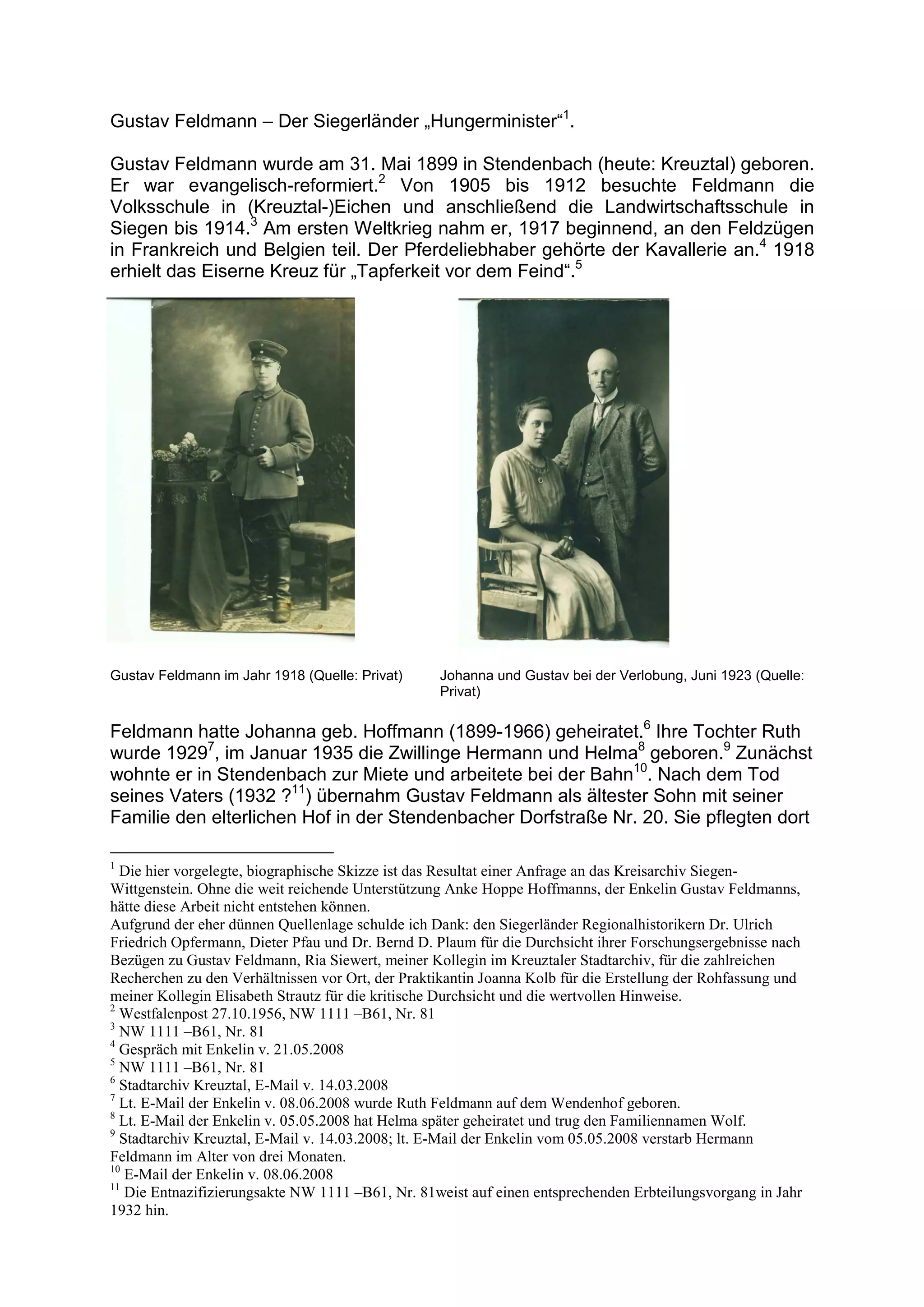 Gustav Feldmann, geboren 1899, war ein deutscher Landwirt und Politiker, der nach dem Zweiten Weltkrieg als 'Hungerminister' fungierte und zahlreiche politische Ämter innehatte, einschließlich der Rolle als Kreisbauernführer. Er war Mitglied der NSDAP und war bis zum Ende des Krieges in verschiedenen landwirtschaftlichen Organisationen aktiv, wurde jedoch 1948 als 'entlastet' im Rahmen des Entnazifizierungsverfahrens eingestuft. Feldmann verstarb 1966 bei einem Autounfall; seine Mitmenschen beschrieben ihn als freundlich, hilfsbereit und verantwortungsbewusst.