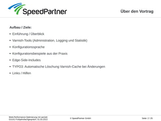 Der Vortrag behandelt die Web-Performance-Optimierung mit Varnish, einem leistungsstarken Reverse-Proxy, und bietet einen Überblick über dessen Funktionen, Konfigurationssprache sowie praktische Anwendungsbeispiele. Es werden verschiedene Methoden zur Verarbeitung von HTTP-Anfragen, Cache-Management, anpassbare Konfigurationstechniken und die Verwendung von Edge-Side-Includes vorgestellt. Weiterhin wird erläutert, wie Monitoring und Logging in Varnish integriert sind, um die Leistung und Effizienz der Webanwendungen zu steigern.