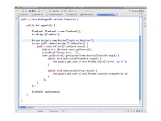 GWT (Google Web Toolkit) ist ein Framework zur Entwicklung von Ajax-Anwendungen, das es Entwicklern ermöglicht, Rich Internet Applications in Java zu erstellen, während der GWT-Compiler den spezifischen HTML- und JavaScript-Code für verschiedene Browser generiert. Es bietet Funktionen wie History Management, Lokalisierung, Client/Server-Kommunikation und Unterstützung für unit tests, jedoch mit einigen Nachteilen wie der Größe der Widgets und einer begrenzten API-Emulation. Die Google App Engine stellt Entwicklungswerkzeuge und eine skalierbare Infrastruktur bereit, hat jedoch Einschränkungen hinsichtlich der Datenbankabfragen und der Nutzung von Google-Diensten.