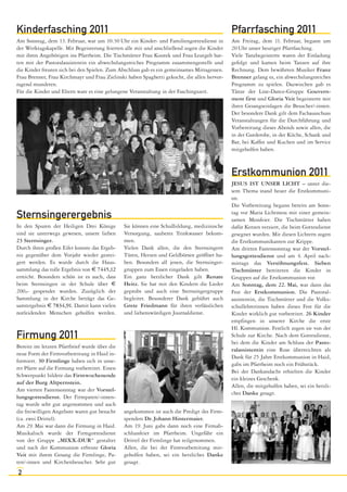 Der Pfarrbrief informiert über personelle Änderungen in der Pfarre Haid, insbesondere über die Pensionierung der langjährigen Pastoralassistentin Marianne Waslmayr, und lädt zur Feier ihrer Verabschiedung ein. Außerdem werden die Veranstaltungen zur Erstkommunion und Firmung erwähnt, sowie das erfolgreich durchgeführte Sternsingen, welches eine beträchtliche Spendensumme erzielt hat. Der Pfarrer bedankt sich bei den Mitwirkenden und wünscht der Gemeinde eine erholsame Zeit und einen guten Start ins neue Arbeitsjahr.