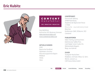 Der Content-Relaunch behandelt die Notwendigkeit und die strategischen Ansätze zur Überarbeitung von Webseiten, um Reichweite und Conversion zu erhöhen. Zu den zentralen Themen gehören das Ausmisten veralteter Inhalte, die Verbesserung von vorhandenen Inhalten und die Erweiterung durch neue, zielgruppenorientierte Inhalte. Der Prozess umfasst auch technische SEO-Aspekte und erfordert die Einbeziehung von verschiedenen Stakeholdern innerhalb des Unternehmens.