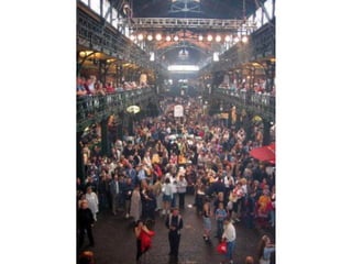 Das Dokument beschreibt mehrere Wahrzeichen und Attraktionen in Hamburg, Deutschland. Dazu gehören der Fischmarkt, die Rickmer Rickmers, der alte Elbtunnel, die Landungsbrücken, die St. Michaelis Kirche, die Speicherstadt, die Reeperbahn, der Fluss Elbe und der Alstersee. Blankenese wird ebenfalls erwähnt als eine Erholungs- und Freizeitdestination in der Stadt.