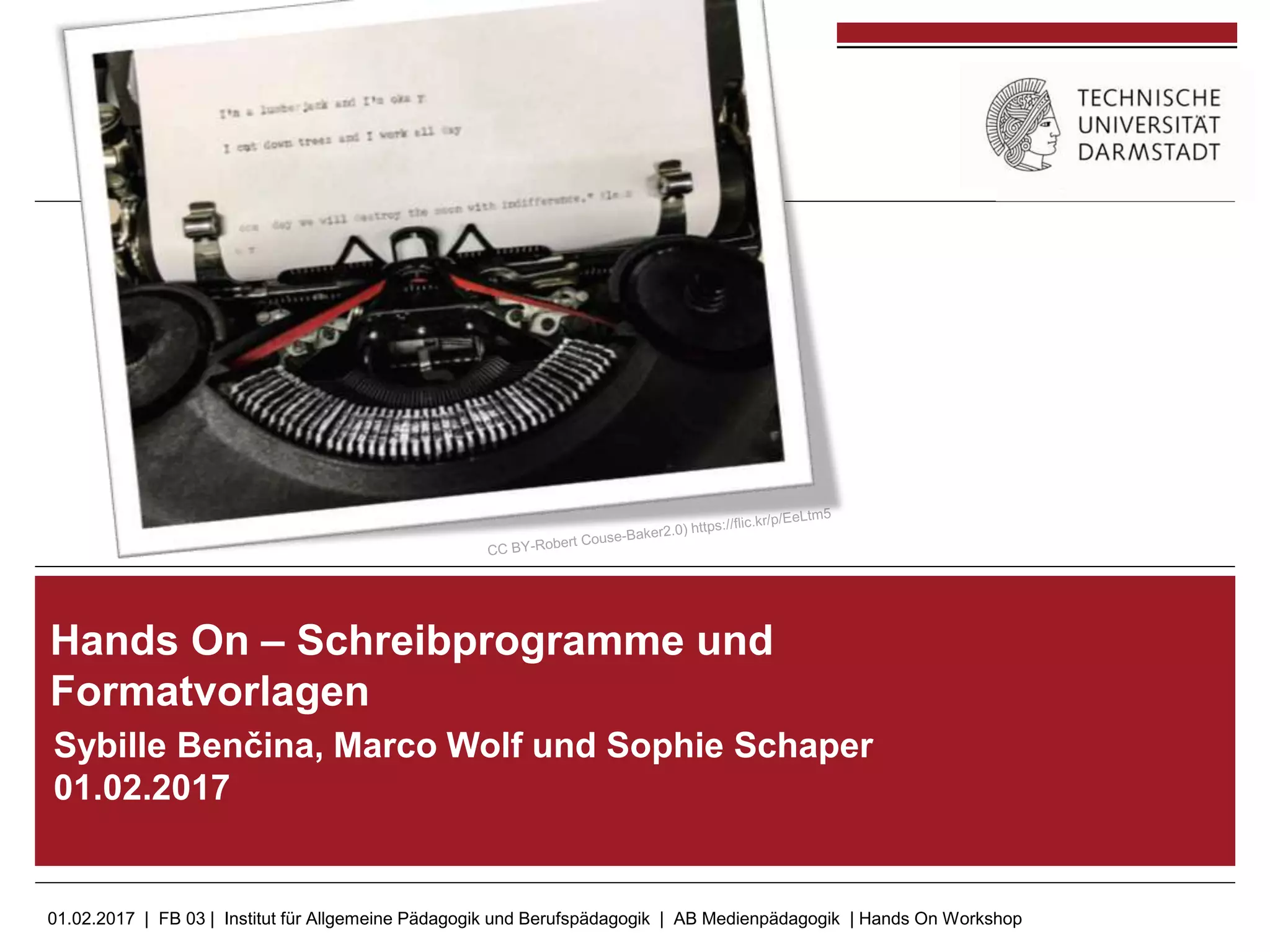 Das Dokument beschreibt einen Workshop zur Einführung in wissenschaftliche Schreibprogramme und Formatvorlagen, wobei besonders Latex, Adobe InDesign und MS Word behandelt werden. Es werden sowohl allgemeine als auch individuelle Ansprüche an wissenschaftliche Texte thematisiert, sowie die Bedeutung von Layout und Ästhetik für die Lesbarkeit hervorgehoben. Zudem wird auf die unterschiedlichen Schreibkulturen und ihre spezifischen Anforderungen eingegangen, verbunden mit praktischen Tipps zur Auswahl und Nutzung der Programme.