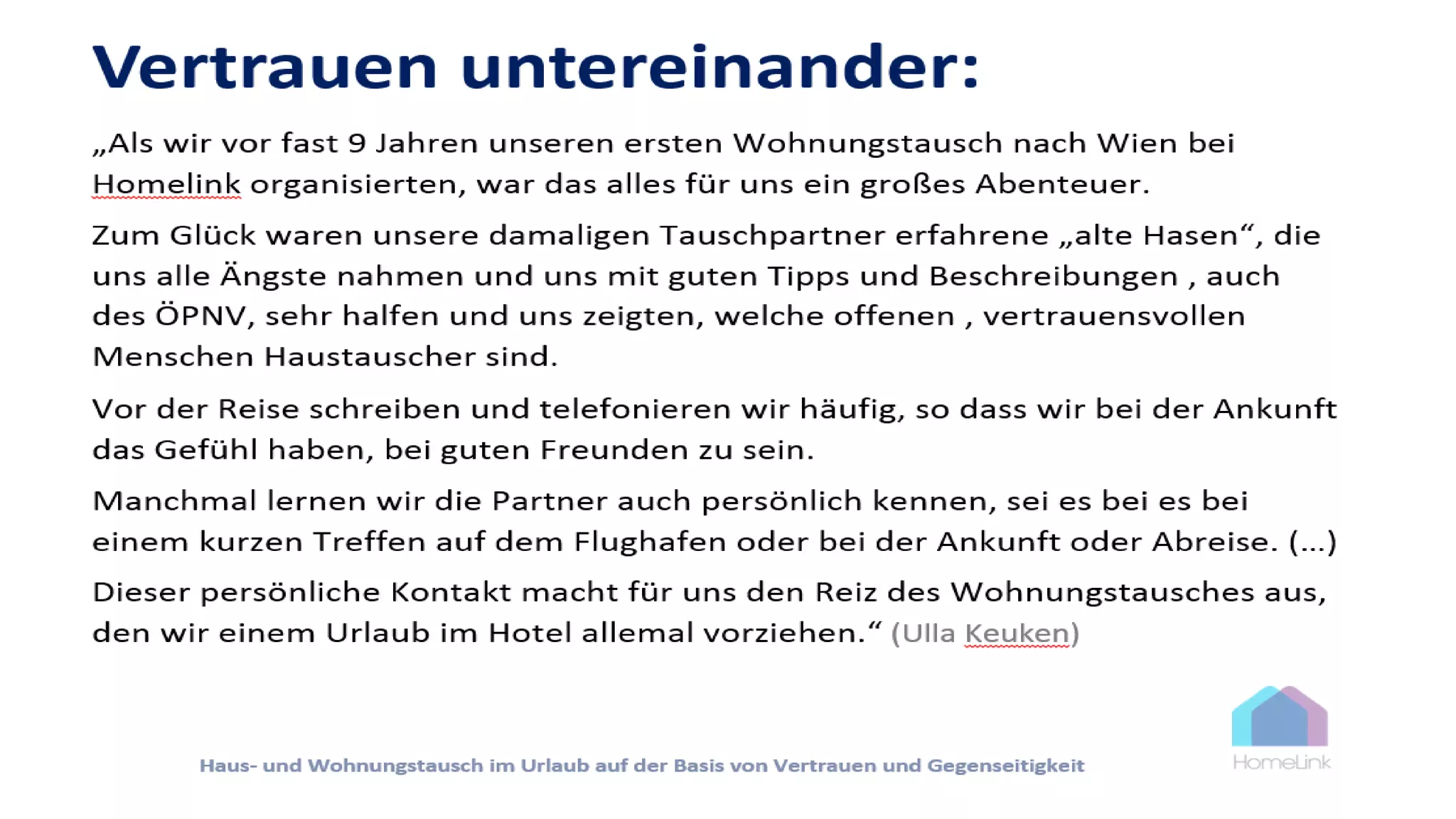 Das Dokument beschreibt ein Referat über Haus- und Wohnungstausch im Urlaub, das am 2. Dezember 2014 von Susanne Lypold im Rahmen der 8. kollektiven Intelligenz Eventwoche gehalten wurde. Weitere Informationen sind im Chat auf www.netbaes.net und während der Eventwoche verfügbar. Zusätzlich gibt es Zugriff auf ein Archiv vergangener Veranstaltungen auf derselben Website.