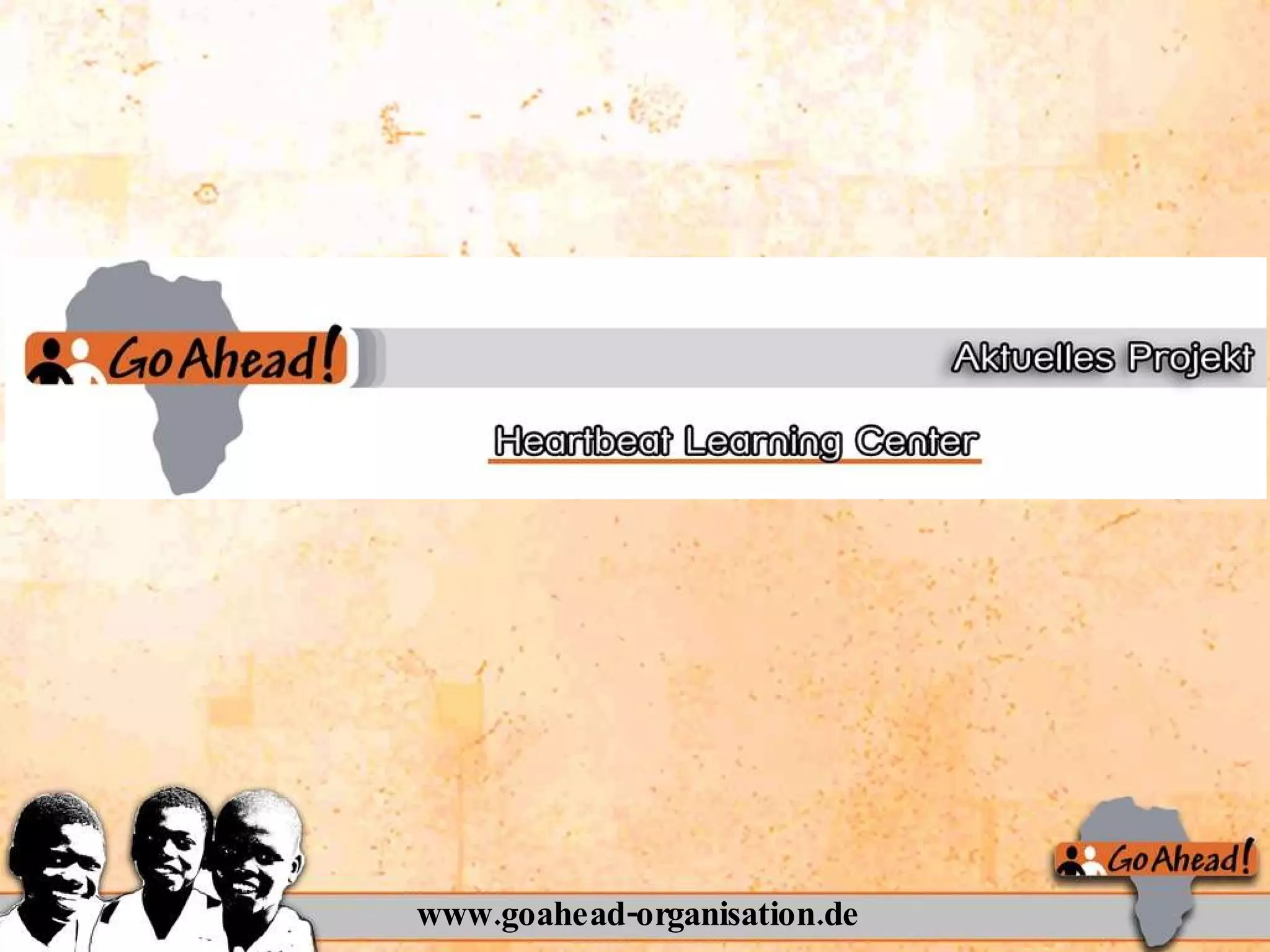 Die Organisation 'go ahead! e.V.' setzt sich seit zwei Jahren für bedürftige Kinder und Jugendliche in Südafrika ein, indem sie Bildungsangebote schafft und zeigt eine erfolgreiche Zusammenarbeit mit der NGO 'heartbeat', die seit 2000 über 18.000 Kinder erreicht hat. Mit über 350 Mitgliedern unterstützt 'go ahead!' 140 Vorschulkinder und ermöglicht 27 Jugendlichen eine vollständige Schulbildung. Das Learning Center in Kwazulu Natal wird bis September 2009 eingerichtet, um Nachhilfe und Psychosozialbetreuung für benachteiligte Kinder anzubieten.
