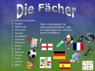 Der Text beschreibt die Schulvorlieben und den Stundenplan eines Schülers, der Mathematik und Naturwissenschaften als seine Lieblingsfächer angibt. Zudem werden verschiedene Fächer sowie der Inhalt seiner Pausenverpflegung aufgelistet. Der Schüler trägt eine spezielle Uniform und gibt die Kosten für seine Snacks an.