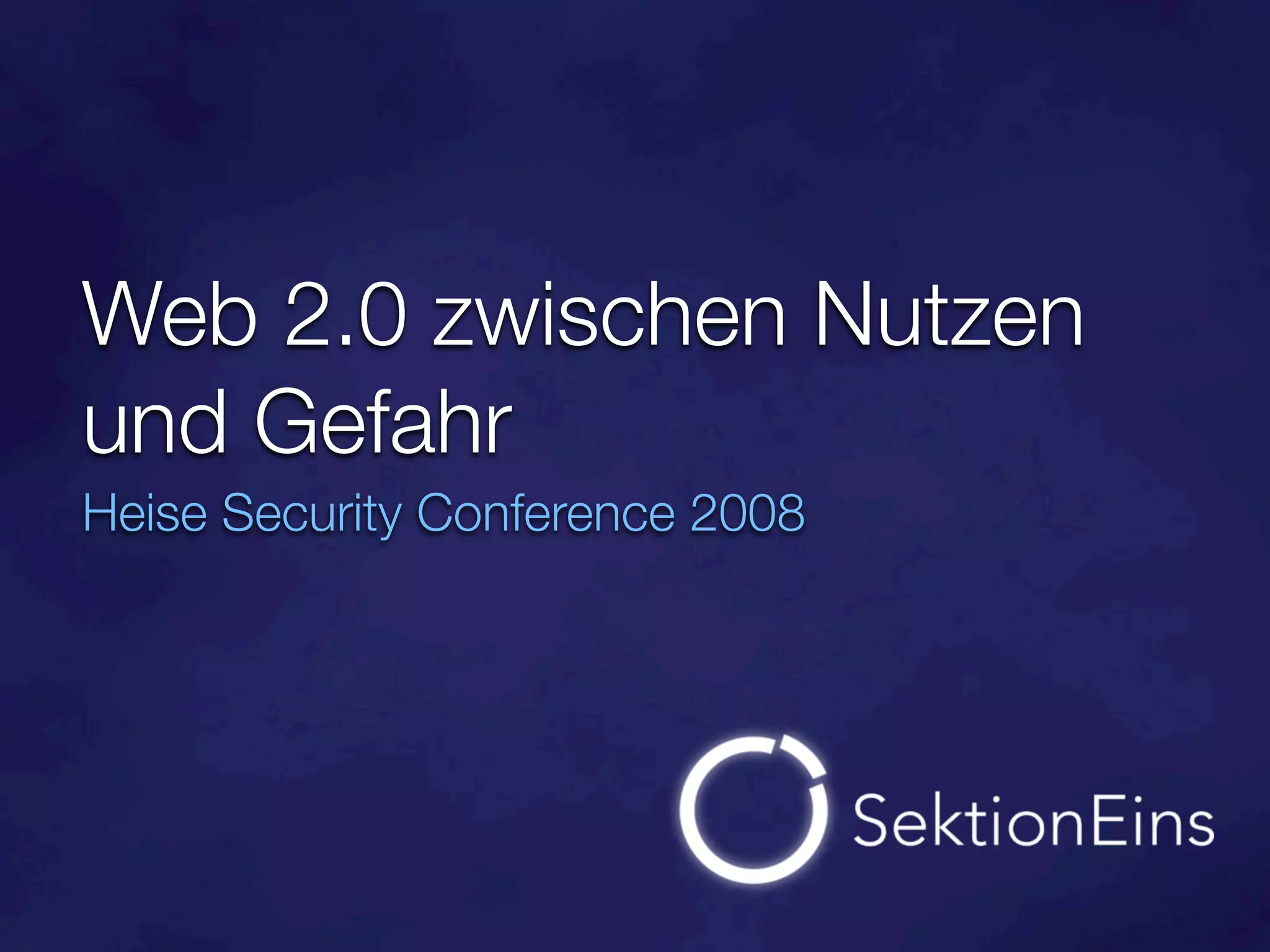 Die Heise Security Conference 2008 thematisiert die Risiken und Herausforderungen von Web 2.0, insbesondere im Hinblick auf JavaScript-Sicherheit, Cross-Zone-Exploits und die Gefahren durch Browser-Plugins. Es wird aufgezeigt, dass viele Angriffe auf Webanwendungen abzielen und dass die Sicherheitsaudits oft hinterherhinken, was durch steigende Komplexität und neue Technologien wie AJAX verschärft wird. Außerdem wird die Notwendigkeit betont, Privatsphäre und Vertrauen in sozialen Netzwerken neu zu bewerten, da persönliche Daten zunehmend verwertet werden können.