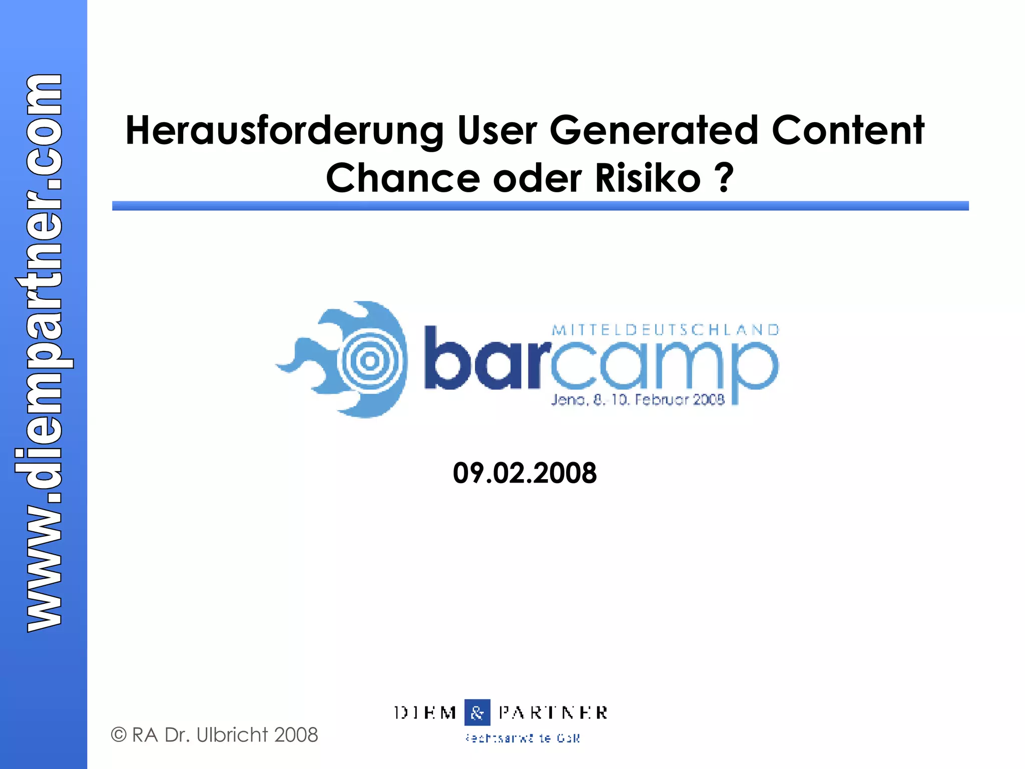 Das Dokument erörtert die Herausforderungen und Chancen von User Generated Content (UGC) sowie die damit verbundenen rechtlichen Risiken, insbesondere in Bezug auf Haftung und Urheberrecht. Es werden die Grundlagen und Haftungsfragen für Plattformbetreiber behandelt, die Inhalte von Nutzern bereitstellen, sowie die Verwertung von UGC. Der Referent gibt praktische Tipps zur Risikominderung und zur transparenten Gestaltung von Nutzungsbedingungen für die erfolgreiche Integration von UGC.