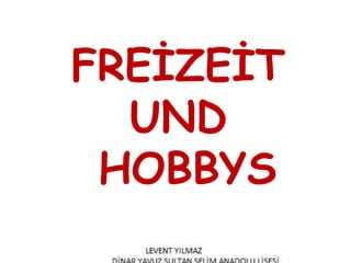 Das Dokument listet verschiedene Freizeitbeschäftigungen und Hobbys auf, darunter Tanzen, Joggen, Surfen, Angeln und viele mehr. Es stellt die Frage nach den Hobbys von verschiedenen Personen und gibt deren Antworten. Einige Hobbys werden mehrfach genannt, während andere einzigartig für die jeweiligen Personen sind.